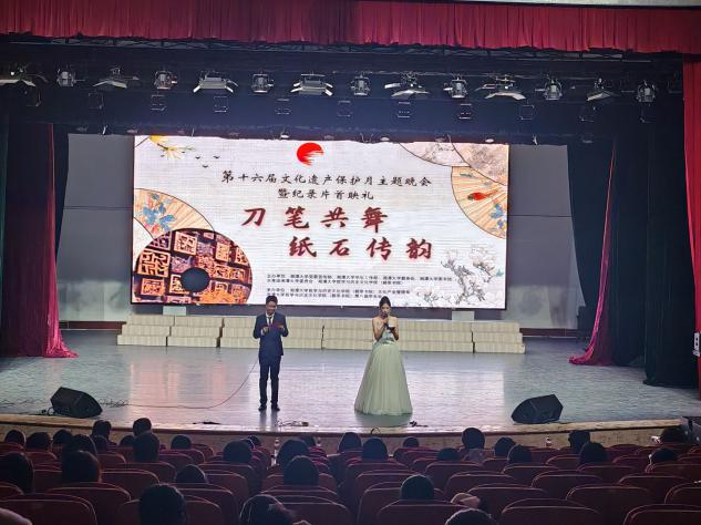 第十六届“刀笔共舞,纸石传韵”文化遗产保护月晚会暨纪录片首映礼在学生活动中心报告厅顺利举办。a漫
