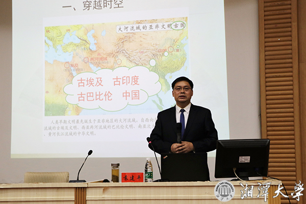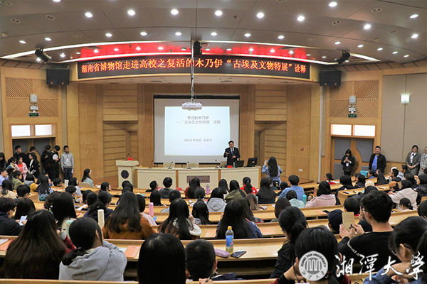 12月1日下午,“省博进高校”活动在我校图书馆报告厅举行,湖南省博物馆陈列部主任袁建平研究馆员作了题为《“复活的木乃伊"——古埃及文物特展诠释》的讲座。讲座由副校长刘建平主持。