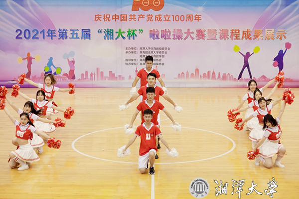 6月6日下午,体育馆内氛围超燃,第五届“湘大杯”啦啦操大赛暨课程成果展示在这里举行。副校长刘建平、湖南省啦啦操协会名誉主席周建社出席。