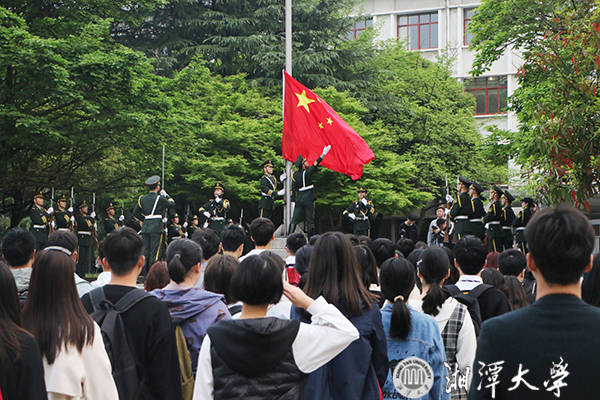 在第一教学楼的前坪上,庄严的升国旗仪式正在进行。在这里,聚集着a漫 ·哲学与历史文化学院哲学、历史、文化产业管理、社会学4个专业的本学期入党积极分子和党员发展对象,以及模拟营教官们。他们一齐唱响国歌,注视着国旗冉冉升起。