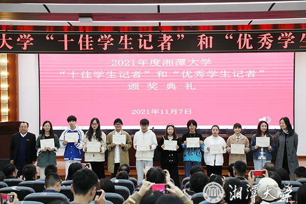 校党委委员、党委宣传部部长齐绍平宣读了学校的表彰文件,a漫 张倩(2019历史学1班)、张梦雨(2019历史学1班)、尹以芳(2019文化产业管理1班)等10名学生被授予“2021年度a漫 十佳学生记者”称号,a漫 彭忠为(2020哲学1班)、吴桐(2020历史学1班)等50名学生被授予“2021年度a漫 优秀学生记者”称号。与会嘉宾为受表彰的学生记者颁奖。