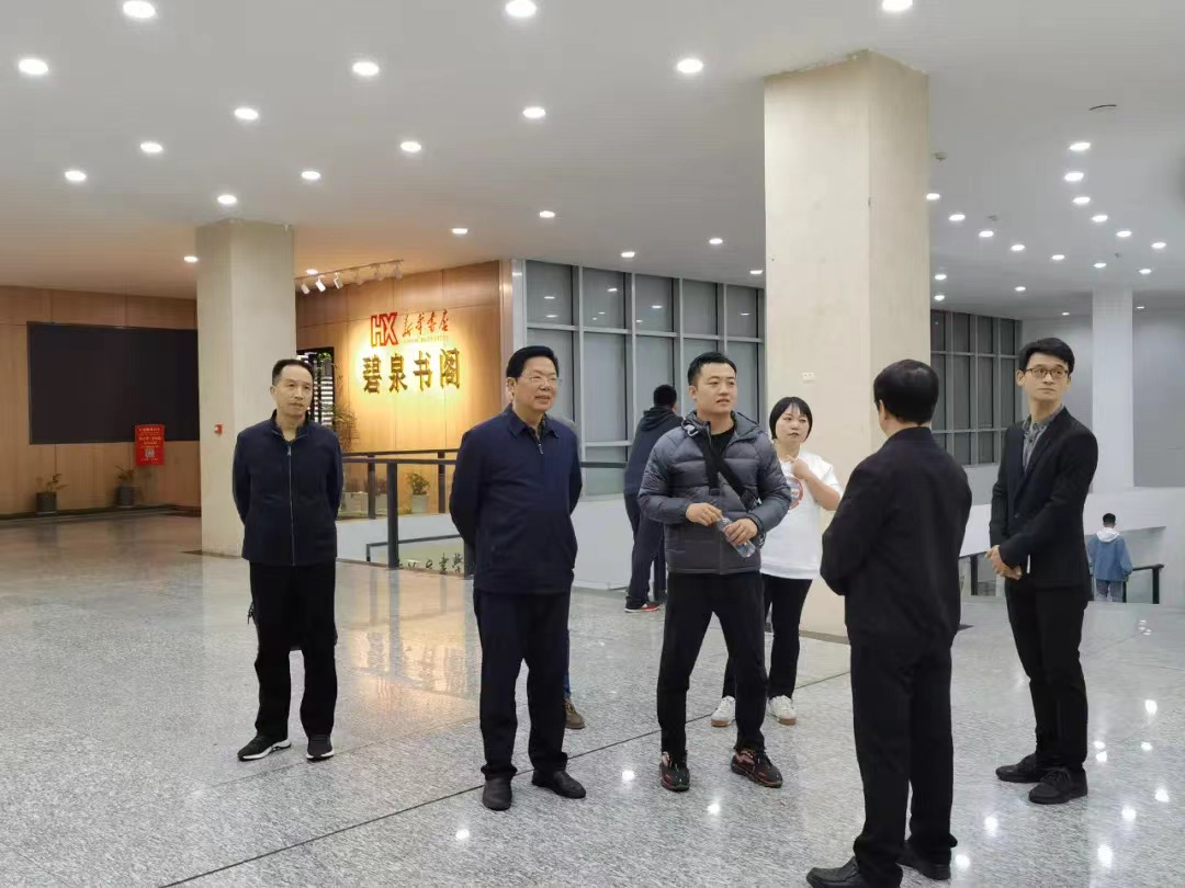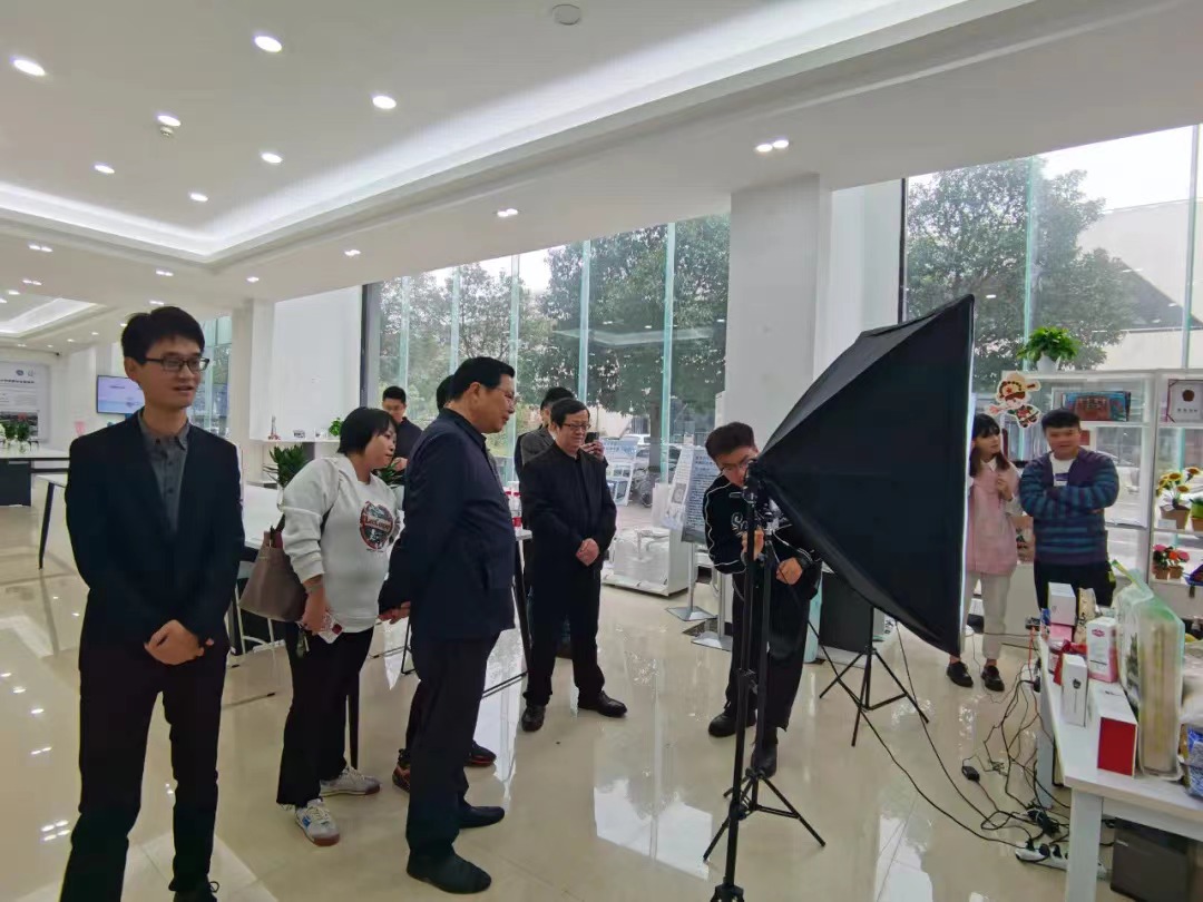 赵志超、杨俊彦等一行还参观了我校双创学院成果展示厅,观看了省营销帮扶大赛参赛选手对碧泉村农产品的直播,听取了陈代湘院长对学生活动中心湖湘文化墙的介绍。