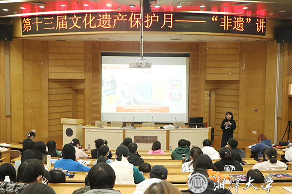 11月16日下午,我校第十三届文化遗产保护月活动之“非遗”讲座在图书馆报告厅举行。本次讲座以“人人都是传承人——非物质文化遗产活态传承与创新推广”为主题,由艺术学院左迎颖副教授担任主讲。