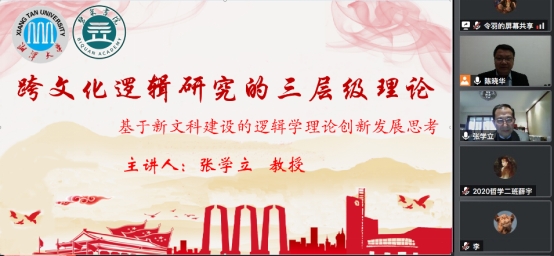 11月29日下午,贵州省社会科学院院长张学立教授应邀做客碧泉讲坛之名家讲堂,作了“跨文化逻辑研究的三层级理论——基于新文科建设的逻辑学理论创新发展思考”为主题的线上学术讲座。近200名师生听了报告。
