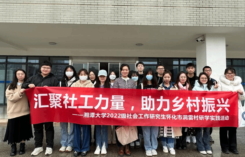 •哲学与历史文化学院社会工作教育中心组织的社会工作专业硕士研究生,前往怀化市通道侗族自治县洞雷村开展以“汇聚社工力量,助力乡村振兴”为主题的研学活动。本次研学由社会工作专业教师王林丽带队,共15位2022级社会工作专业研究生参与。研学团队在怀化市民政局了解社会工作人才队伍建设,深入洞雷村,实地调研社会工作专业人才支持“三区”计划通道县洞雷村社会工作参与乡村振兴服务项目。整个活动历时四天,在走访、座谈、实践中,充分认识到社工与乡村振兴的密切关联。