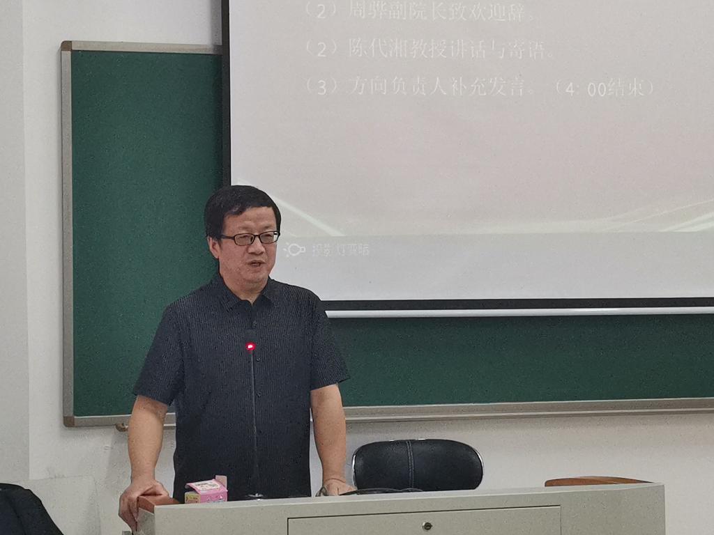 马哲负责人代表廖加林教授补充讲话,他说,人生就是不断努力上台阶提升自己,在这个研究生新的台阶上要运用会读、会写、会讲这三种能力,努力实现三年以后再上一个台阶。还指出读书看文章要站在巨人的肩上提高效率,要自律学习,更要锻炼身体,让自己成为自己的人生赢家。