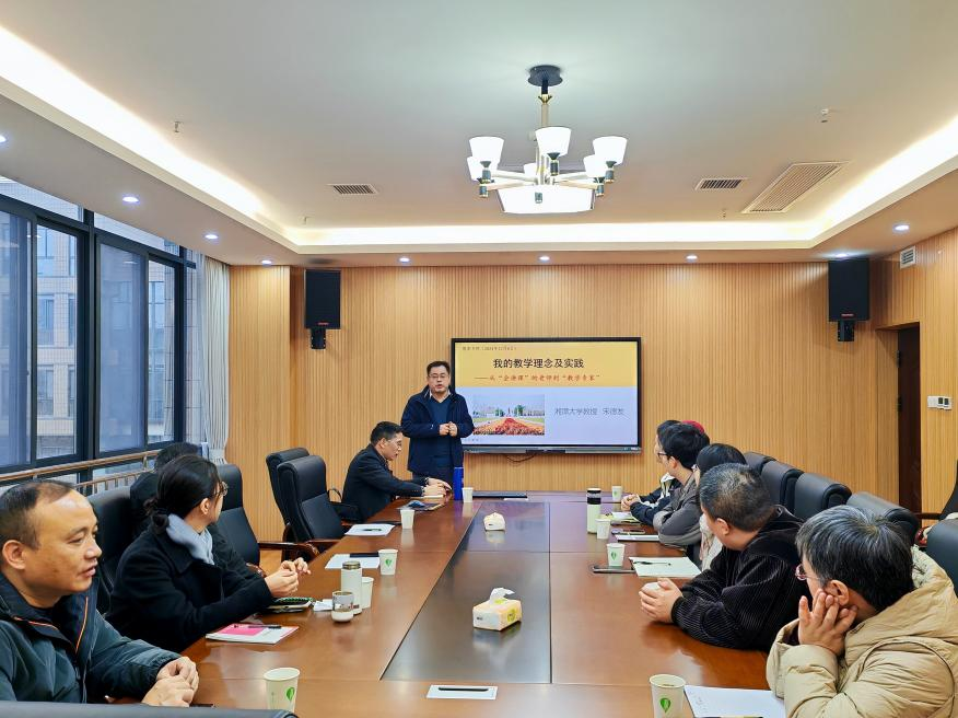 活动伊始,特邀嘉宾、湖南省首届“芙蓉教学名师”文学与新闻学院副院长宋德发教授做经验分享。宋教授自2002年留校任教以来,以讲好每一堂课为职业追求,注重口才训练、科研与教学融合。宋教授强调,应避免与他人过度竞争,要专注于教书育人。他承诺将用接下来的20年继续履行教育者的使命。