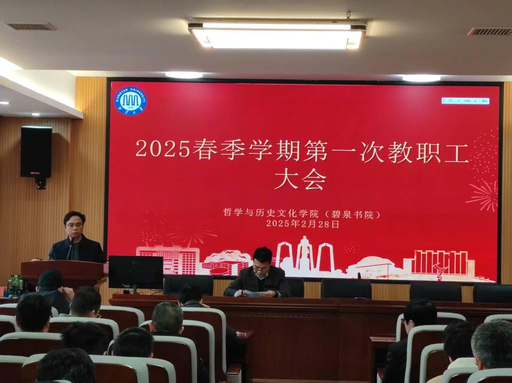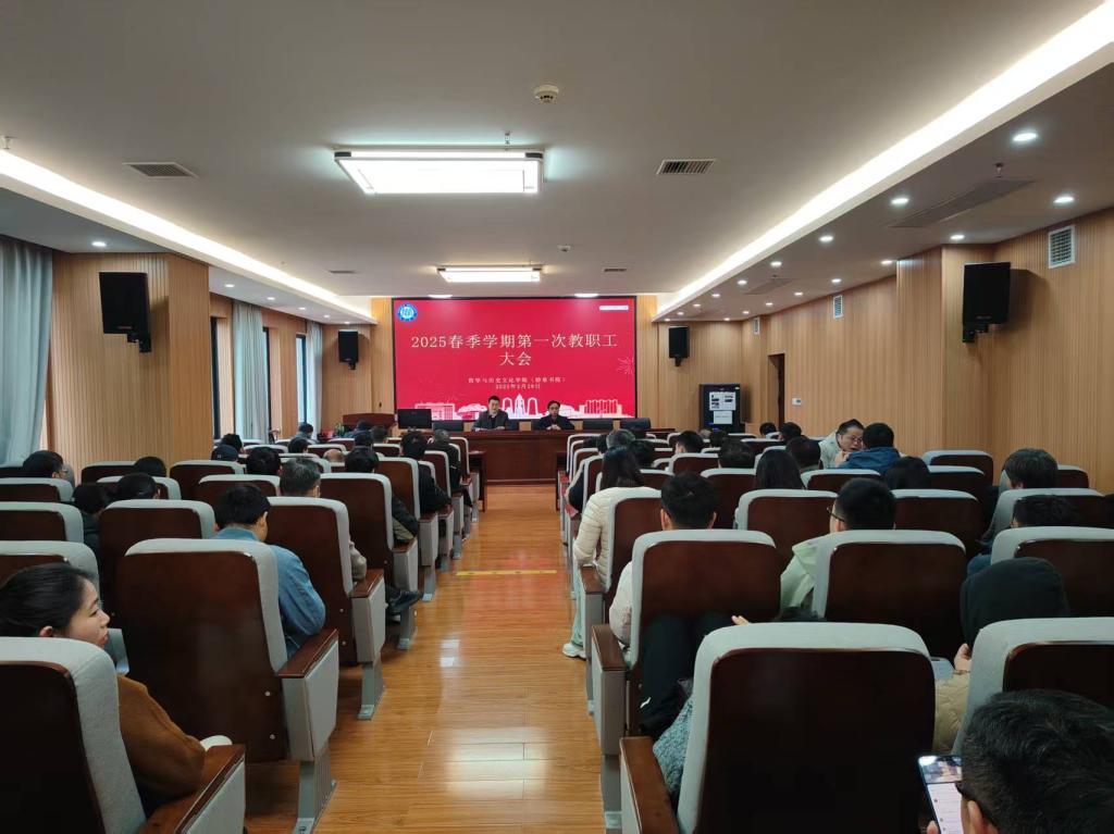 2025年2月28日上午,学院在东506学术报告厅召开2025年春季学期第一次全院教职工大会。院党政领导班子成员及全院教职工参加了会议。会议由院党委书记资义平主持。