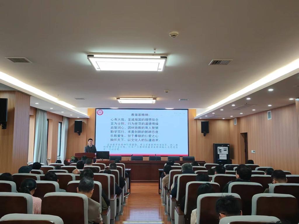 会议第三阶段,进行全院教职工师德师风专题学习教育。院党委书记资义平领学了相关文件,重点学习《中共中央 国务院关于弘扬教育家精神加强新时代高素质专业化教师队伍建设的意见》,要求严格落实贯彻落实上级关于师德师风建设和有关意识形态工作的决策部署,不断完善师德师风建设长效机制,推进常态化师德培育涵养,明确师德师风作为教师的首要要求和第一标准,以良好的教风涵养、带动良好学风、院风的形成,并结合教育部公开曝光违反教师职业行为典型案例开展了警示教育。