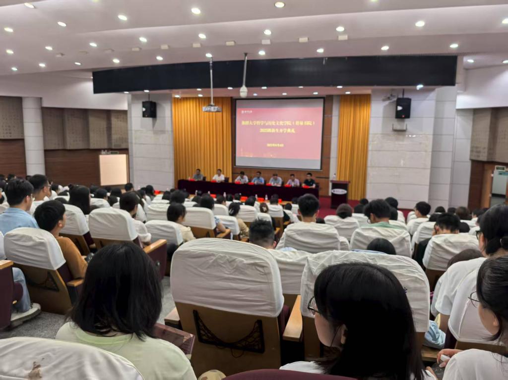 2025级新生开学典礼在逸夫楼第一报告厅顺利举行。学院党委书记资义平主持典礼,院长张今杰,副院长周骅,蒋波、郑鹏,各学位点负责人、各系主任、教师代表、校友代表,与281名本科生、165名硕士研究生及14名博士研究生新生齐聚一堂,共同开启新篇章。