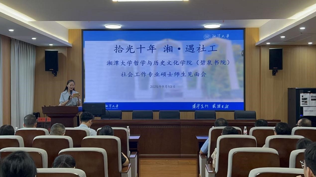 2025级新生见面会上,硕士生导师及全体新生齐聚一堂,围绕学业规划、专业发展与社会工作使命展开深入交流。校外导师杨怀保结合自身经历,向新生提出“为何学、如何学、学成如何干”的三大核心议题,鼓励学生深耕学术、勇于实践。校内导师周金玲从社会工作专业特色与湖湘文化“经世致用”精神出发,以电影《八角笼中》为例,呼吁社会工作学生应更多关注弱势群体与社会问题。她指出,社会工作是以生命影响生命的职业,需将个体关怀升华为普遍理论,推动社会服务与公益事业的发展。老生代表张雨欣同学告诉学弟学妹们,作为一名社会工作专业的硕士研究生,应以“准专业社工”身份投身实践,通过个案服务、社区工作与项目参与锤炼能力,实现知行合一。新生代表阳春雨学生发言表示在未来的学习生涯中要通过社区实践、课题研究与思维碰撞,培养社会责任感和专业素养。最后,郑鹏副院长深情回顾了社会工作硕士专业的十年发展历程,呼吁师生要“抱朴守正”,以推己及人的社会哲学和专业本领应对时代变革,强调“救个人即救社会,救社会即救国家”,期待学生将所学融入AI时代的社会服务中,彰显湘大社工人的价值。