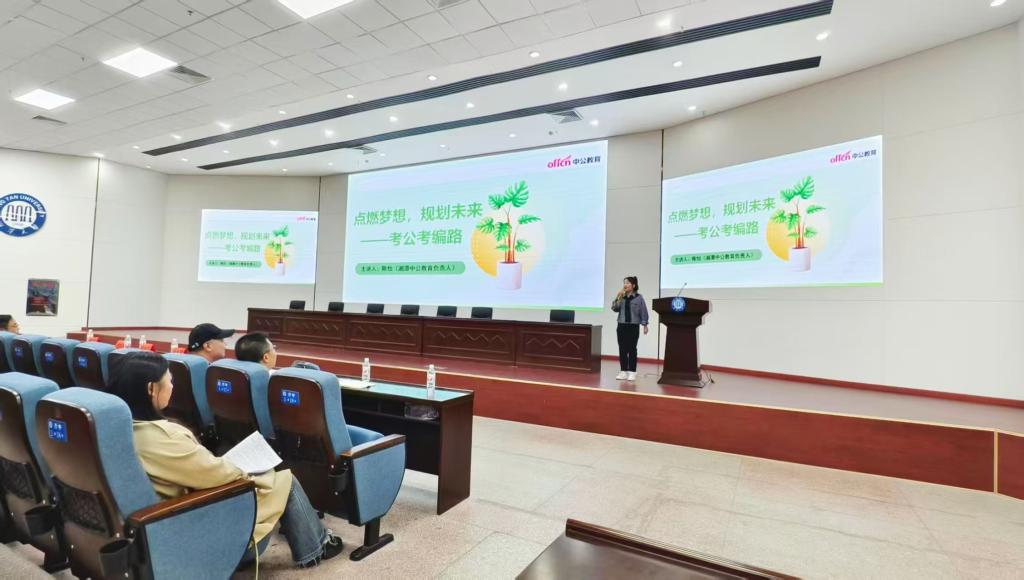 中公教育负责人作考公、考编备考指导,对公务员考试、选调生考试、事业编考试的报考要求等方面进行了讲解。针对湖南省公务员考试的考试时间、招录人数以及各系统招录情况进行详细讲解,鼓励同学们要相信自己,做好备考规划,把握各种机会,在备考中磨练不凡意志。