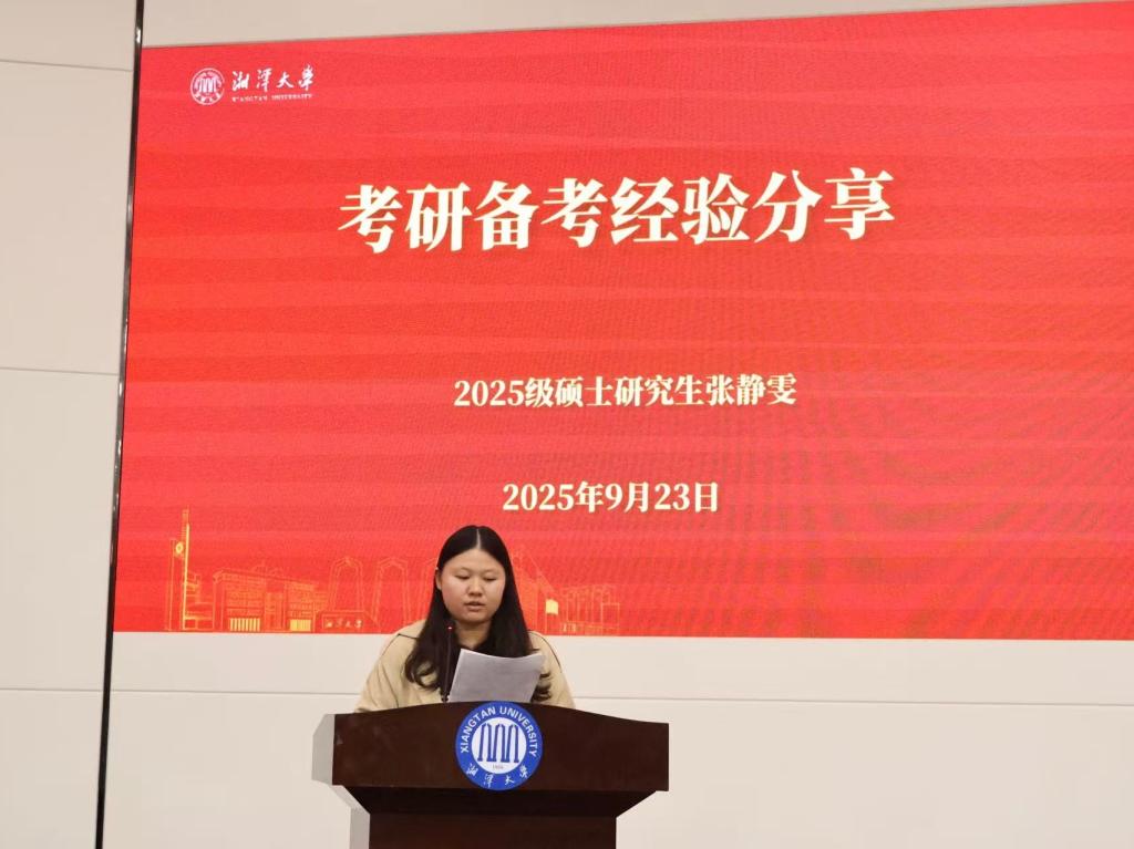 2025级硕士研究生张静雯分享考研备考经验。她从时间规划、择校倾向、心态调整三个方面出发,建议学弟学妹们在考研备考过程中要有明确的时间规划,提高学习效率,朝着自己的目标不断努力。她谈到,备考过程不仅是解决问题的过程,更是实现理想、不断追求更高目标的过程。