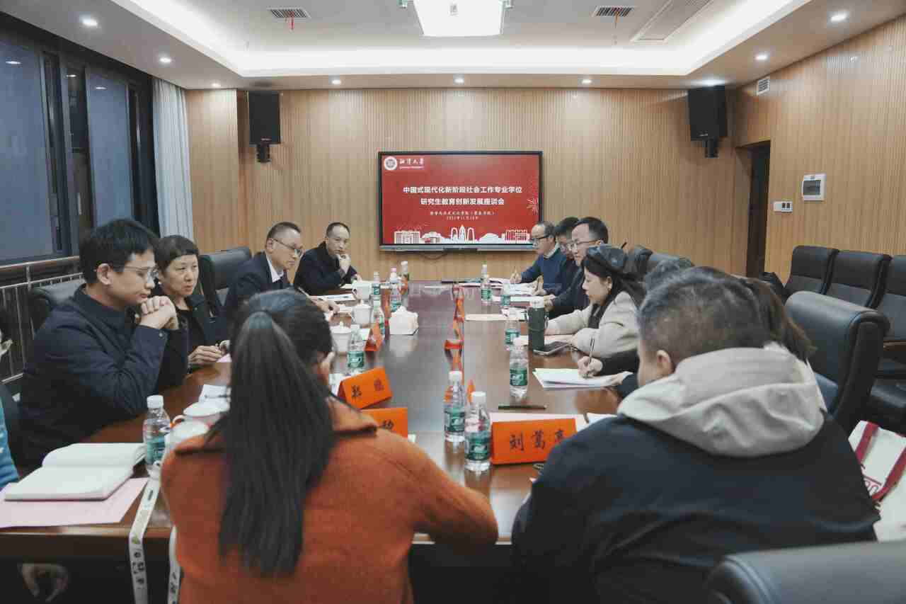 在北318会议室召开“中国式现代化新阶段社会工作专业学位研究生教育的创新发展”座谈会。会议特邀北京大学知名学者马凤芝教授莅临指导,副校长刘中望、学院院长张今杰、副院长郑鹏及二十余位骨干教师参会,依托a漫