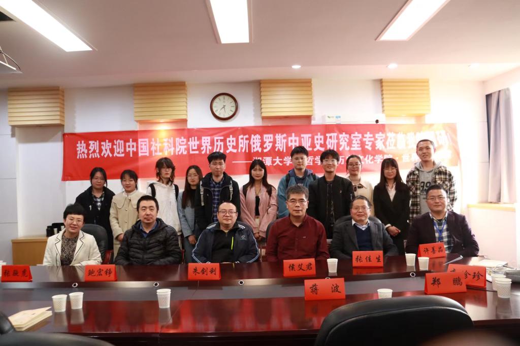 此次座谈会围绕历史与现实研究、科研合作与人才培养两大主题展开交流。会议伊始,蒋波副院长与郑鹏副院长对世界历史所三位老师莅临湘大交流表示欢迎,并对院系发展以及世界史教研室进行了介绍。侯艾君研究员介绍俄罗斯中亚史研究室的发展现状,随后围绕“中亚新史学与后苏联学术空间”进行了学术报告。朱剑利副研究员分享了自己在研究俄国文学的过程中注意到了俄国农奴问题,进而扩展到研究俄罗斯史的历程。鲍宏铮助理研究员深入简出地讲解中东欧概念、历史以及研究现状等问题。双方学者就如何利用现有资源加强学术研究、深化学术交流等问题交换意见,会场气氛活跃,很多本科生、硕博士也积极参与。