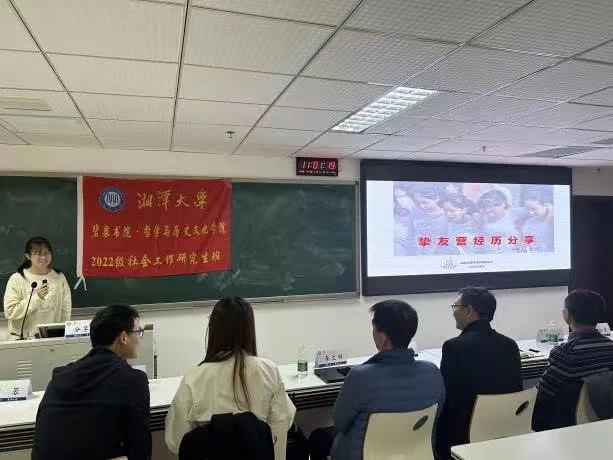 2023年4月25日上午,“碧泉论坛·社工茶座”第一期线下实务分享会在研究生院A603如期举行。社工茶座是面对社工专业硕士生开展的系列主题活动,包括读书分享会、实务分享会和社会实践活动等。