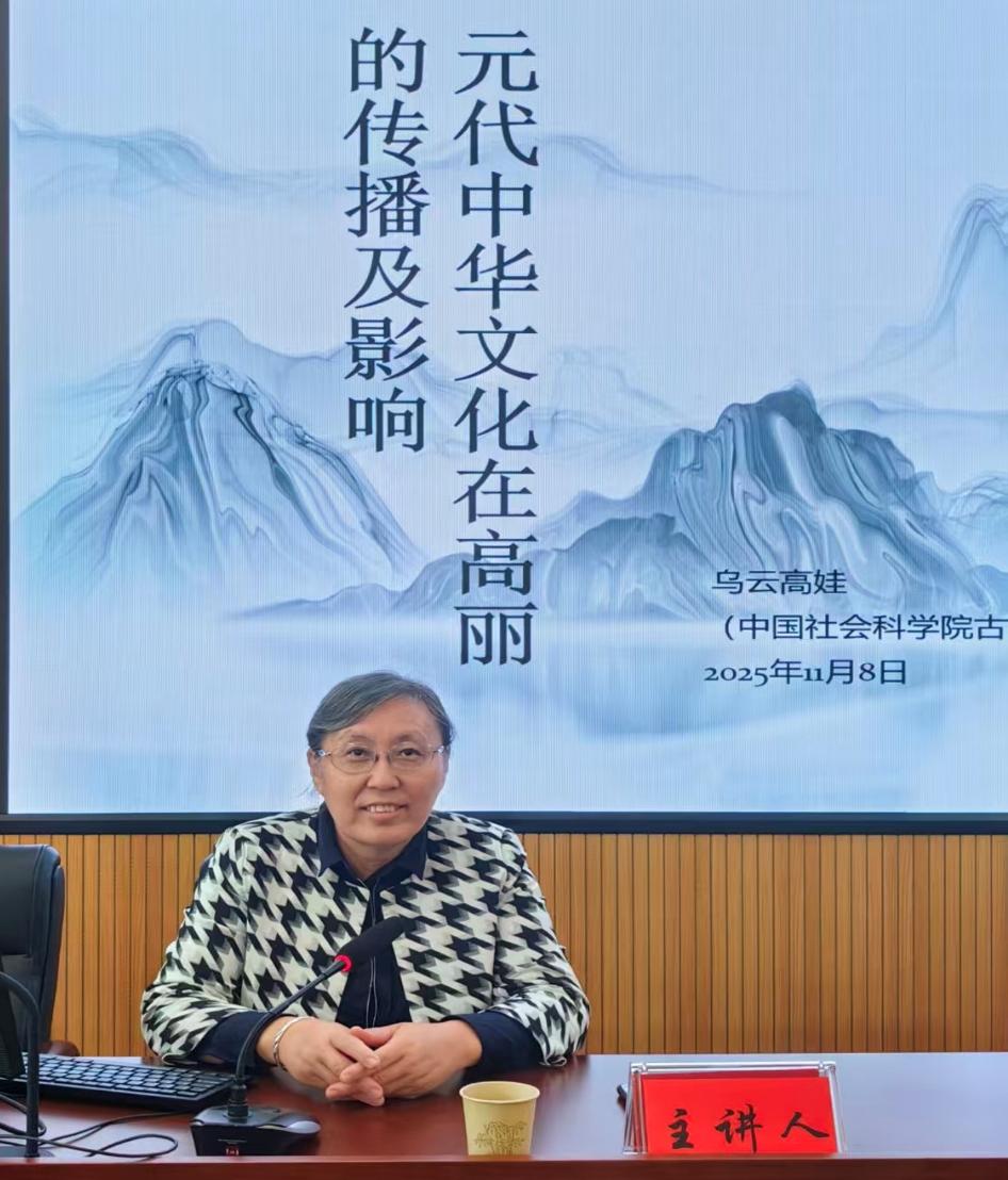 举办学术讲座,由中国社会科学院古代史研究所乌云高娃研究员主讲“元代中华文化在高丽的传播及影响”。讲座从多个角度系统梳理了元代中华文明向高丽传播的路径、内容及其深远影响,为理解古代中国与朝鲜半岛的文化交流提供了重要视角。讲座由a漫