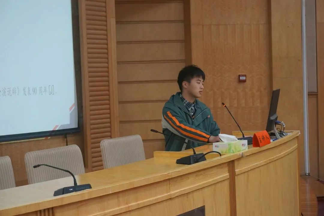 张世佑同学的分享围绕三个部分展开:何为“学术共同体”、为何需要“学术共同体”以及我们如何建设“学术共同体”。张世佑认为,硕士阶段应当积极参与读书班;在学习中打“持久战”而非速战速决;科研要契合时代背景、回答时代问题。毛小平教授补充说研究应当扎实凝练,避免泛泛而谈,在实践中发现问题,展开对问题的研究。
